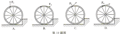 19.(09金华)在海南举办的大力士比赛中,有一个项目是把车轮推上台阶。下面把车轮推上台阶的四种方法,推力的作用点相同,推力的方向不同,如图所示,则哪一种推法最省力