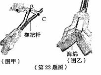 (09湖州)图甲所示的是现在比较流行的新型拖把,只需要用手在A处向上拉动即可把海绵拧干,非常方便卫生。这里拉杆ABC是 (选填省力或费力)杠杆。从图乙海绵的形状变化可说明