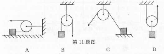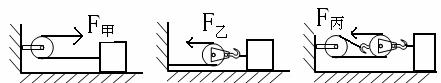 (09四川自贡).同一物体沿相同水平地面被匀速移动,如下图所示,拉力分别为F甲、F乙、F丙,不记滑轮与轻绳间的摩擦,比较它们的大小,则