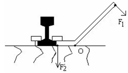 (09兰州)--.右图为用道钉撬来撬铁路枕木上道钉的图片,若阻力F2为1500N,根据图片估算此道钉撬所用最小动力F1的大小。