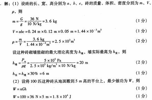 36.(09金华)改革开放以来,我国城乡面貌发生了日新月异的变化,民众的住房条件得到了很大的改善。建造某幢公寓楼,所用建筑材料的总重为6×108牛。此公寓楼楼顶到地面的高度为40米。求: