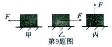 (09义乌)9、质量为m的物体受到拉力F的作用,在水平地面上向左做匀速直线运动。如图所示为其受到拉力F的示意图,其中可能的是