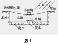 11. 身处偏远海岛,按图4所示方法可获取少量的淡水。