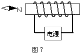 17. 在图7中,标出电源的正、负极。