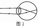 (2)图2是非正常眼睛的示意图,请在图中适当的位置画出合适的透镜用于矫正。
