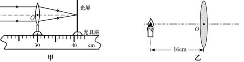 (3)调整后,把烛焰放在距凸透镜16cm处时(如图乙),在凸透镜另一侧前后移动光屏,会在光屏上得到一个倒立、 的实像(填写像的性质); (填光学仪器)就是利用这一成像规律工作的。如果将蜡烛在乙图的基础上远离透镜,仍要在光屏上得到清晰的像,光屏应向 (选填“靠近”或“远离”)透镜的方向移动。