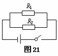 31.在图21所示的电路中,电源电压为6V,电阻R1的阻值是20Ω,开关闭合后,通过电阻R2的电流是0.6A.