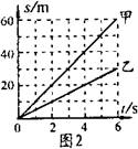 辆普通公交车乙,从同一路口同时向东匀速行驶.它们的路程随时间变化的图像如图2所示,则运行2min后,甲车相对于乙车向 方向行驶,两车相距 m。