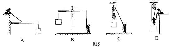 12.用图5所示的四种机械提起同一重物,不计机械自重和摩擦,最省力的是