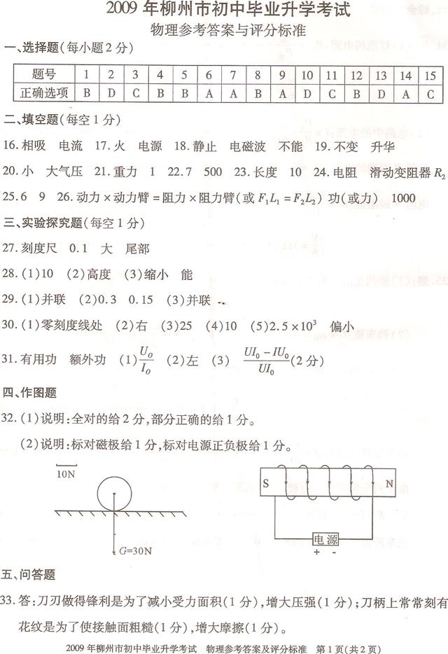 33.家中使用的菜刀刀刃都做得很锋利,而刀柄上常常刻有花纹。请用所学的物理知识解释这样做的好处。