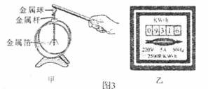 9.图3中,甲仪器的作用是___________,工作原理是_______________;乙是测_____________的仪表,它应该连接在家庭电路_______路上。