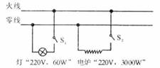 如图4所示,当闭合开关S.时,灯正常发光;再闭合S2使电炉开始工作,灯变暗了。对以上现象的分析是:因为电炉的__________大,使用后导致下路中的________大,导线分压增大, 灯两端实际电压__________。
