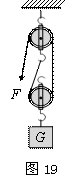 如图19所示,拉力F=80N,物体重G=120N,若绳子自由端匀速拉动的距离s=4m,物体被提高的距离h=2m,,求: