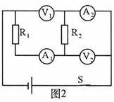 6.如图2所示的电路中,电压表V1的示数为9伏,电压表V2的示数为3伏,那么R1与R2的阻值之比为