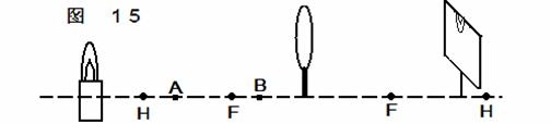 28.(4分)小芳同学在“探究凸透镜成像”的规律的实验中,她按如图15装配仪器 (图中F点是焦点,H点是2倍焦距处) ,此时光屏上得到了一个清晰的像,但像的位置偏高。