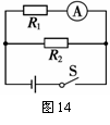 23.(4分)在图14电路中,R1=10Ω,R2=20Ω,闭合开关后,电流表的示数为0.3A。