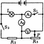 动变阻器,A1的量程为3A,A2的量程为0.6A,V的量程为3V,电源电压恒定不变。