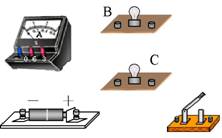 A、火药的燃气把子弹从枪膛中射出 B、电流通过白炽灯泡发光