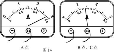 (3)小红所在小组的同学选用了两个“2.5V 0.3A”的小灯泡,按电路图(图甲)连接后做了两次实验,第一次的电流表读数如图14所示,请将数据记录在表二相应位置。