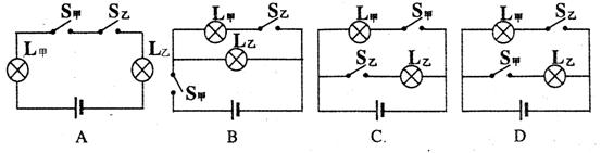 ”表示)击中乙方的导电服时,电路导通,乙方指示灯亮。下面能反映这种原理的电路是
