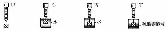 3. (2008年广安市)如图所示是研究浮力与哪些因素有关的实验,弹簧测力计下挂着同一物体,其示数依次是5N,4N、4N、3N。