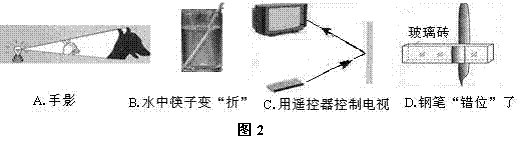 5. 如图2所示的四种情景中,属于光的反射的是:
