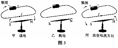 D.甲、乙、丙三次实验现象共同表明电能生磁,且其磁场方向与电流方向有关