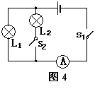 如图4所示电路中,电源电压保持不变,闭合开关S1、S2,两灯都发光,当把开关S2断开时,灯泡L1的亮度及电流表示数的变化情况是:
