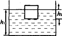 (05调)18.如图所示,一立方体木块漂浮在底面积为4×10-2m2的盛水容器内.木块密度p=O.6×103 kg/m3,边长L=0.1 m,容器内水的深摩hl=0.2m,木块下表面距水面h2=0.06m(g=10N/kg).求: