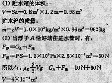 当水箱中水深达到1.2m时,浮子A恰好堵住进水管向箱 内放水,此时浮子A有1/3体积露出水面(浮子A只能沿图示位置的竖直方向移动).若进水管口水的压强为1.2×105 Pa,管口横截面积为2.5 cm,贮水箱面积为0.8m2,