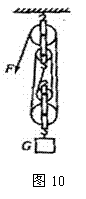 一个工人用如图10所示的滑轮组匀速提升2000N的货物,所用拉力为600N,绳子自由端被拉下4m,求: