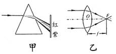 (2007年河南省)如图所示,冬冬在探究光的色散现象时,看到白光经三棱镜后,光屏上自上而下出现了红、橙、黄、绿、蓝、靛、紫的色带,冬冬对产生的原因进行了思考。受此启发,在测量凸透镜的焦距时,冬冬想:如果分别用红光和紫光平行于同一个凸透镜的主光轴射入,红光、紫光对凸透镜的焦距是否不同呢?请写出你的推断: 色光对凸透镜的焦距大,你推断的理由是: