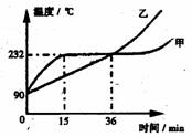 甲、乙两种物质熔化时温度随时间的变化曲线如图所示,从图中给出的信息,我们可以判断 物质是晶体,该晶体的熔点是 ℃,该晶体加热 min后开始熔化。