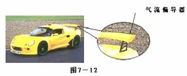 有的跑车在车的尾部设计安装了一种“气流偏导器”,它的上表面平直,底部呈弧形凸起,相当于一个倒置的翅膀(如图7-12所示),这主要是为了让跑车高速行驶时,车轮能更好地抓紧地面。请解释其中道理。