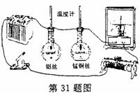 (08调)31.学完焦耳定律后,小红想利用如图所示的装置比较铝和锰铜这两种材料的导电性能。