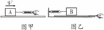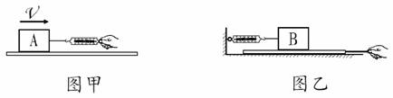 (08长沙)为探究滑动摩擦力的大小与什么因素有关,长沙市某中学的小刚和小明两个同学分别设计了如图甲和图乙所示的实验。按图甲实验时,小刚用手通过弹簧测力计匀速拉动木块A,读出弹簧测力计的示数即可测出木块和木板之间的滑动摩擦力:小明将弹簧测力计一端固定,另一端钩住木块B,木块B下面是长木板.实验时小明拖动长木板,然后读出弹簧测力计的示数,即可测出木块B和木板之间的摩擦力。