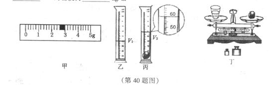 ( 2 )宇瑞在调节好的天平的右盘中放一个50g 的祛码,游码移至如图甲所示位置时,称出石块的质量是________,用量筒测石块的体积,测量过程和读数如图乙和丙所示,则石块体积为________cm3 石块的密度为________kg/m3