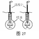 (5)教材上的该实验装置如图27所示(烧瓶与图26中的相同)。 比较图26和图27所示的两个实验,你认为较好的是图________装置,理由是:____________________.