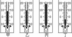 请读出温度计的示数:图中甲、乙、丙、丁各温度计的分度值是1℃,它们的读数分别是:________、________、________、________。