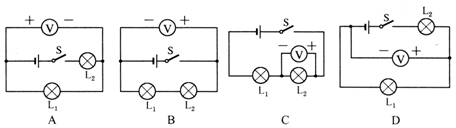 11.在图中所示的电路中,能用电压奉正确测出灯L1两端电压的是 ( )