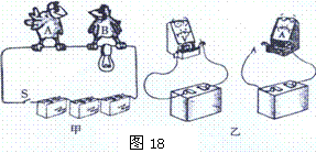 45、如图18所示,甲图中鸟A提示鸟B:“快飞,你会触电的!”鸟B说:“你怎么不怕?”