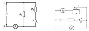 在如图所示的电路中,AB两端的电压为U,开关S断开和闭合时,电流表的示数之比是1:4,则两电阻的阻值之比R1:R2=