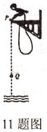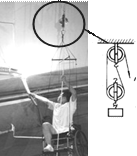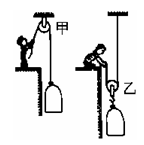 绳索上端借助一个简单机械(见图)牵引着自己和所坐的轮椅缓缓向上攀