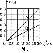 D. B导体两端的电压为3V时,通过它的电流为0.6A