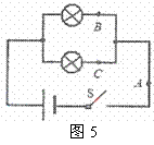 (南京六中)如图5所示,在探究并联电路中的电流关系时,小明同学用电流表测出A、B、C三处的电流分别为IA=0.5A,IB=0.3A,IC=0.2A,在表格中记录数据后,下一步首先应该做的是