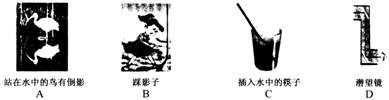 A.“湖光映彩霞”--光的反射现象 B.“潭清疑水浅”--光的折射现象