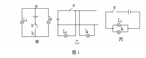 [例题1]根据图1甲、乙两个电路图识别小灯泡是怎样连接的?
