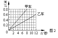 (上海)甲、乙两小车在水平面上同时同地反向做匀速直线运动,它们的s-t图像如图2所示。当两车运动时间均为6秒时,则