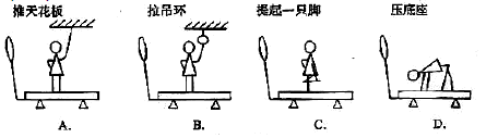 50.(天津)如图:在中考体检时,由于很多同学的体重不能达标,所以在测体重时,就分别采取推、拉、提、压等不当的手段来改变体重计的示数。这其中会使体重计的示数变大的是( )