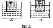 完全相同的长方体木块甲和乙分别放到两种液体中,如图2所示,则此时甲和乙长方体